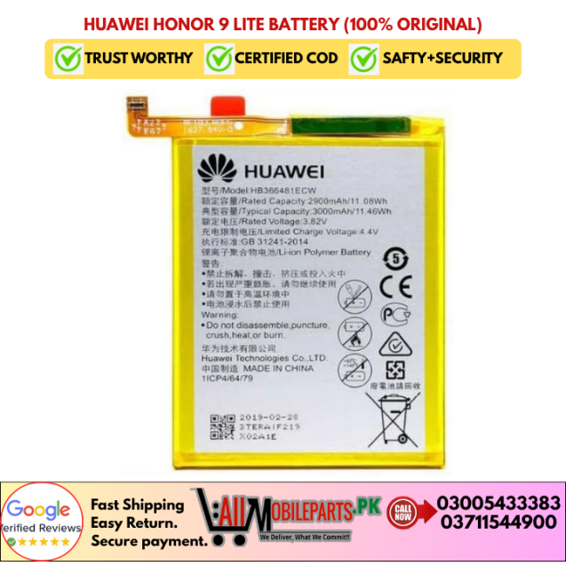 Tags: Huawei, Honor 9 Lite, Battery, Original Battery, Replacement Battery, Li-ion Battery, Mobile Parts, Huawei Accessories, Genuine Huawei Parts, Power Backup, Smartphone Battery