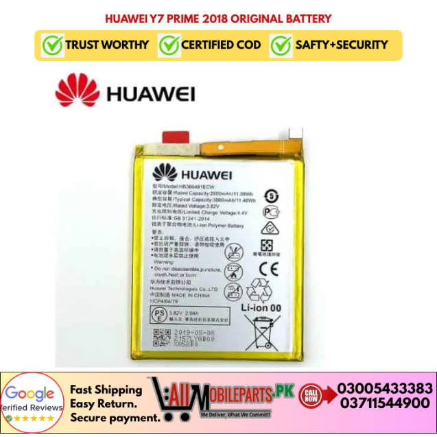 Genuine Original Battery for Huawei Y7 Prime 2018. Provides long-lasting backup, stable performance, and perfect compatibility. Ideal replacement for old or weak batteries.