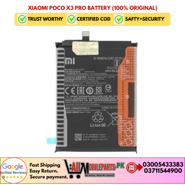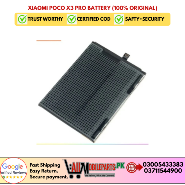 The Xiaomi Poco X3 Pro Battery (100% Original) is a genuine replacement battery designed to restore your phone’s original performance and backup time. Manufactured with premium-grade cells, it ensures long-lasting power, safety, and reliability, just like the factory-fitted battery.