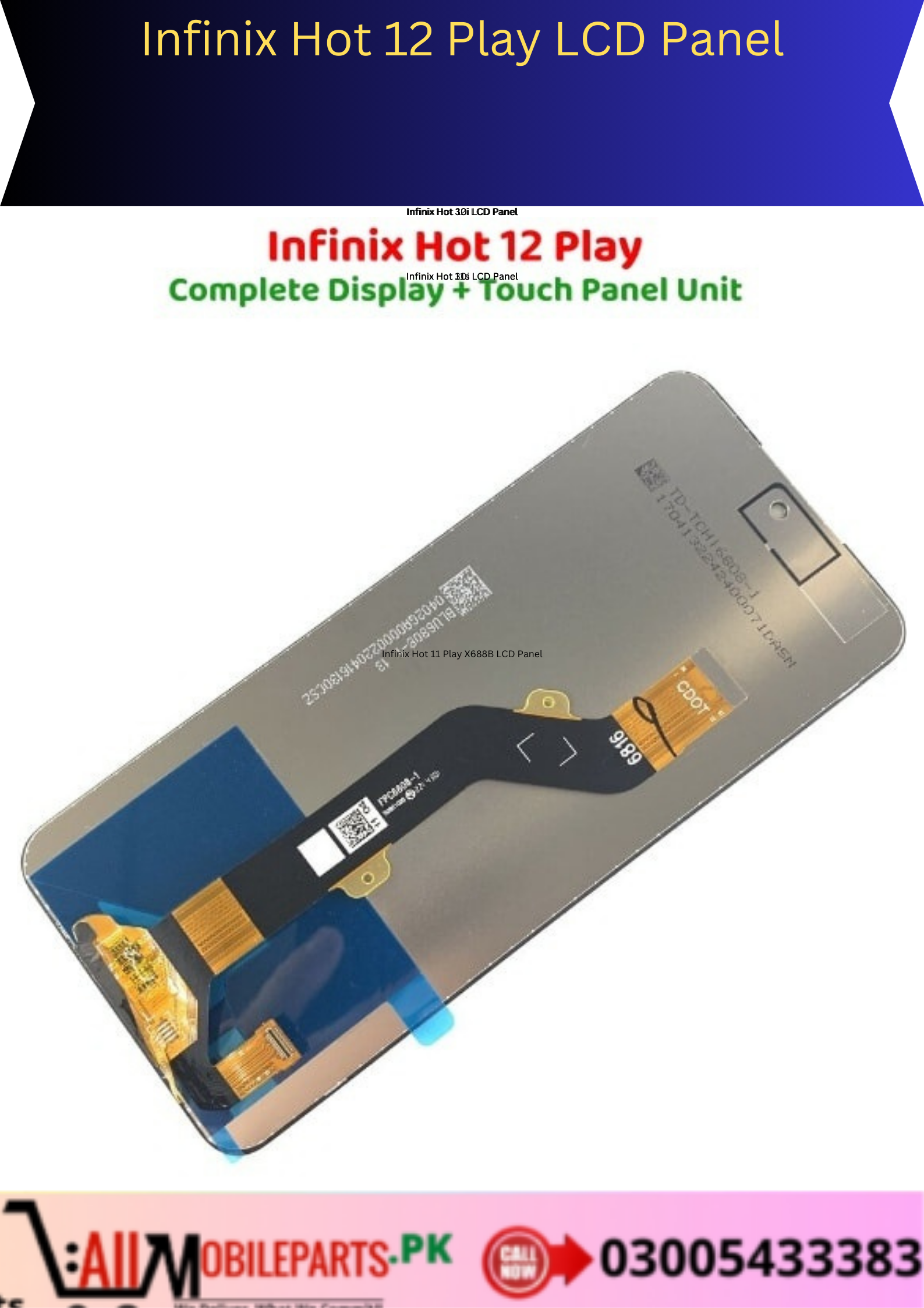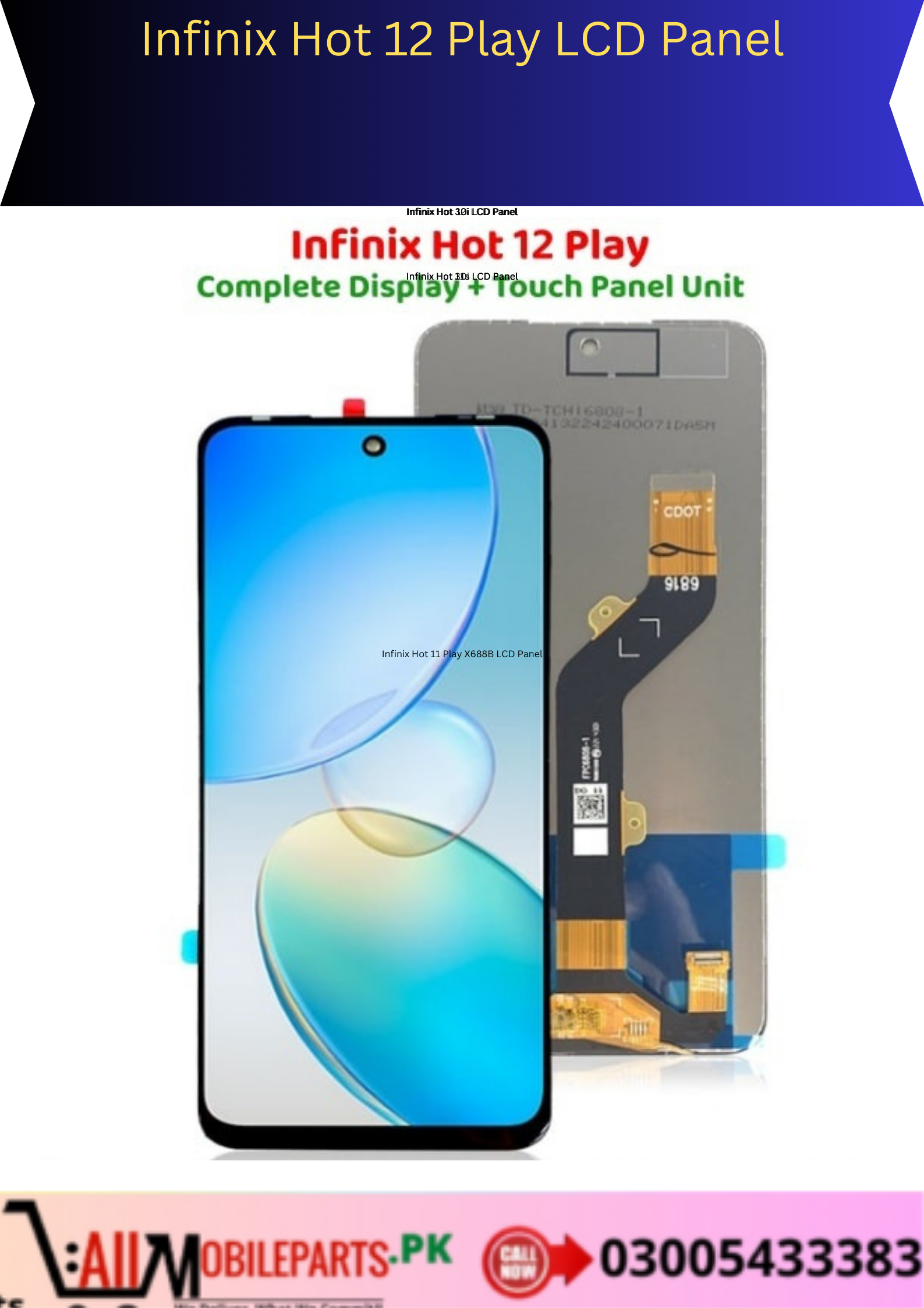 Infinix Hot 12 Play LCD Panel Unit Price In Pakistan