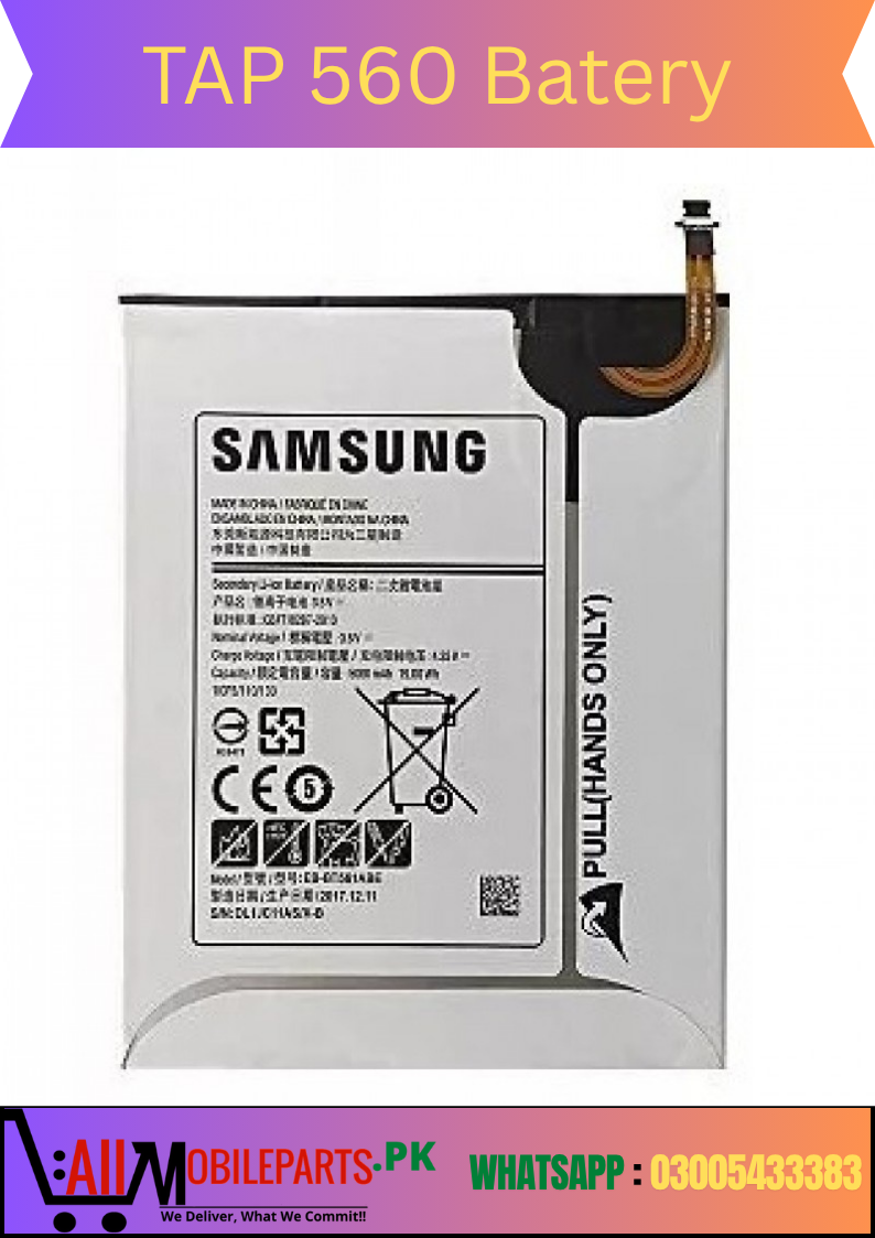 Tags: EB-BT560ABE Samsung Galaxy Tab E T560 Battery T561 Battery 5000mAh Battery Tablet Battery Samsung Replacement Battery Galaxy Tab E Battery Tab E 9.6 Battery Mobile Parts Pakistan AllMobileParts OEM Samsung Battery Tablet Accessories Lithium-ion Battery Battery for Samsung Tablet