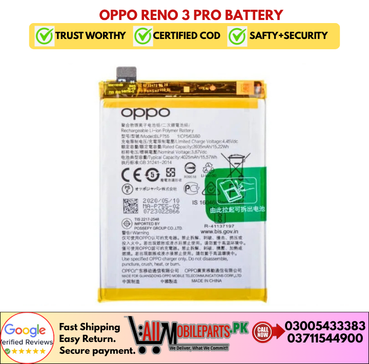 Tags: Oppo Reno 3 Pro, Original Battery, BLP755, Replacement Parts, Mobile Battery, VOOC Flash Charge, Mobile Parts
