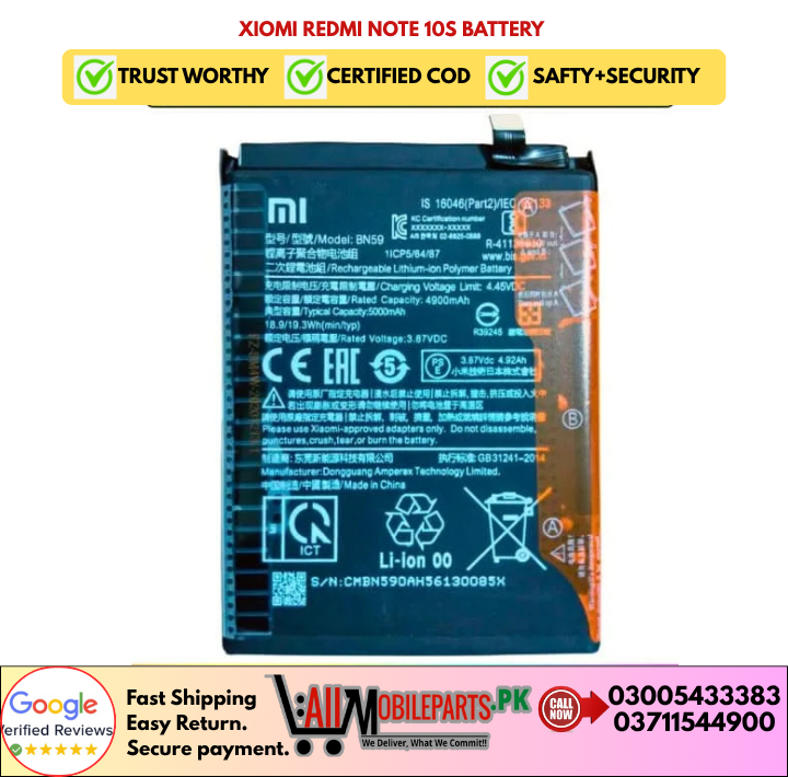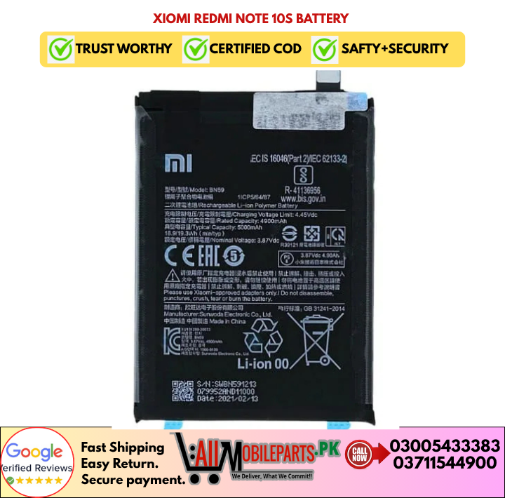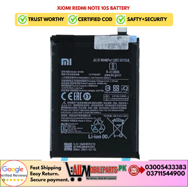 Tags: Redmi Note 10 4G Battery, Note 10S Battery, BN59 Replacement, 5000mAh Battery, Xiaomi Replacement Battery, Smartphone Battery, High Capacity Battery