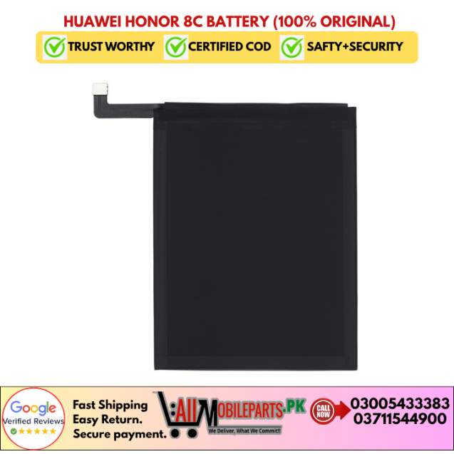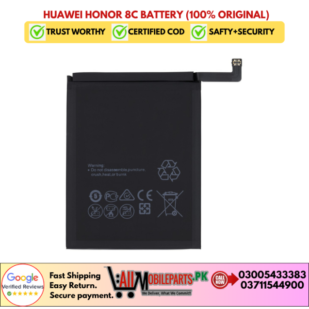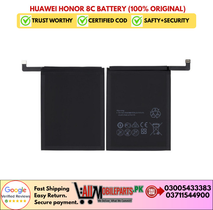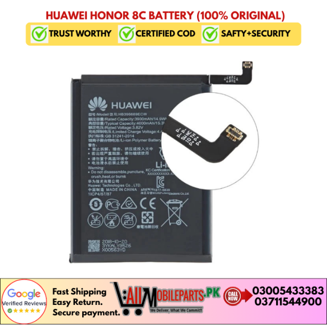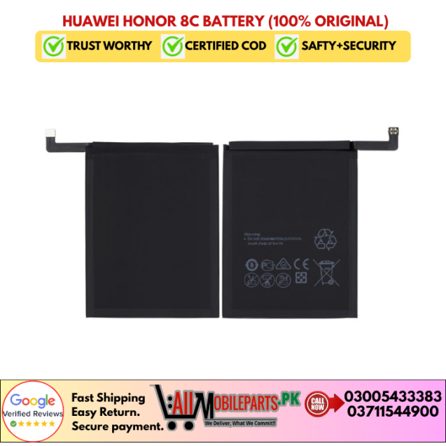 The Huawei Honor 8C Battery (100% Original) is a genuine, factory-tested battery designed to restore your phone’s performance to its original capacity. It provides stable backup, long-lasting power, and reliable performance for daily usage. This original replacement ensures safety, durability, and compatibility with the Honor 8C.