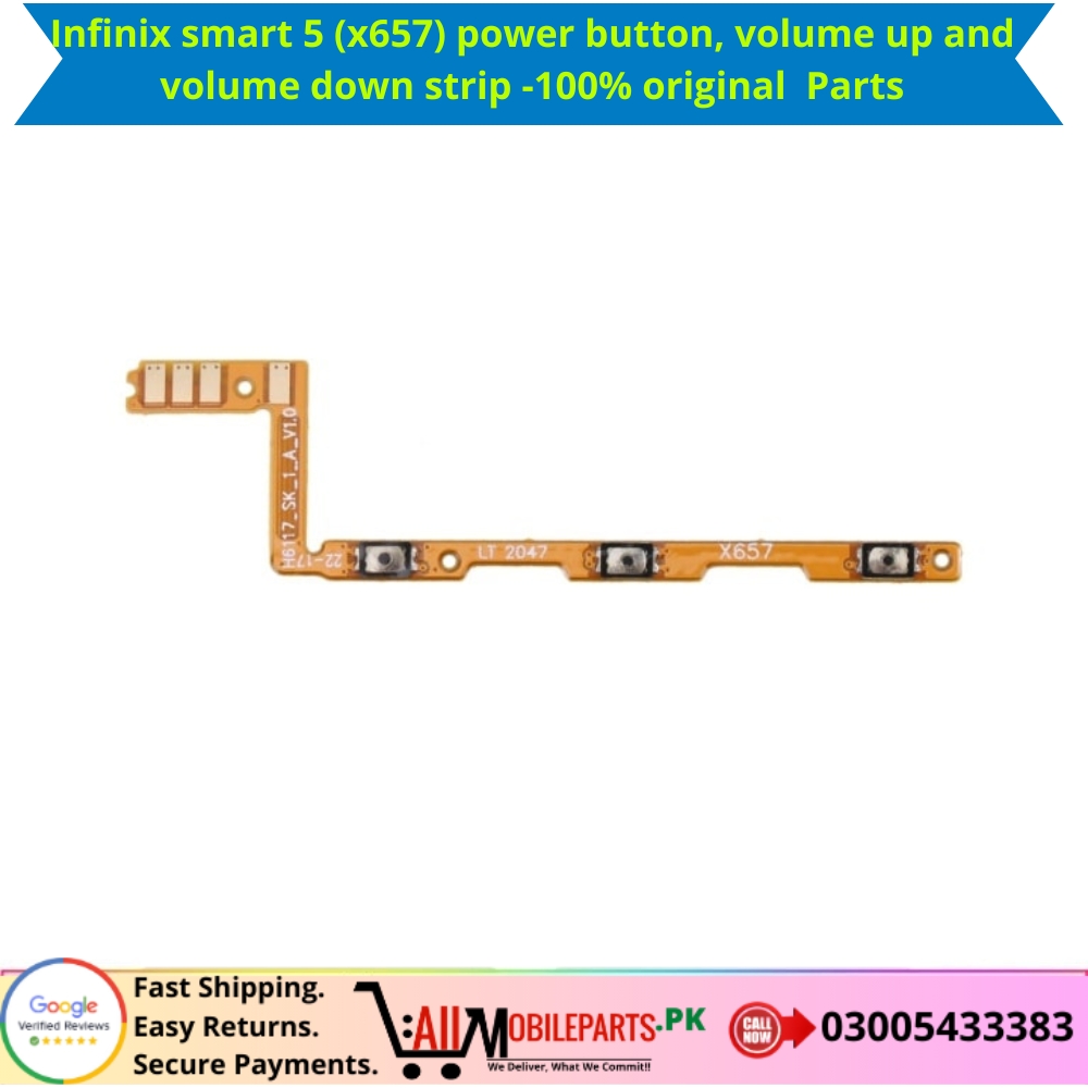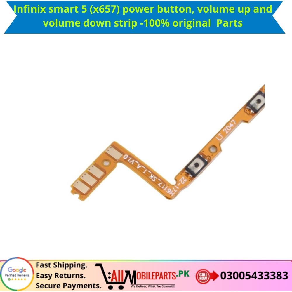 Easily replace the power button, volume up, and volume down strip for your Infinix Smart 5 (X657) with this genuine replacement part. Restore full control to your device's functionality with these essential buttons. Our high-quality strip ensures seamless integration and optimal performance, allowing you to regain effortless control over your Infinix Smart 5 (X657) device