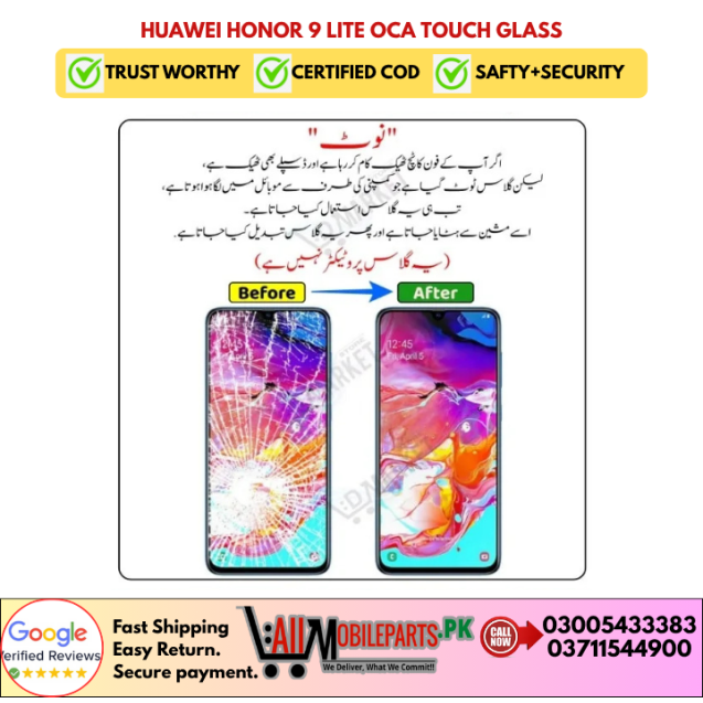 Tags: Huawei, Honor 9 Lite, OCA Glass, Front Glass, Outer Lens, Touch Screen Glass, Replacement Parts, Huawei Spare Parts, Mobile Parts, LCD Refurbish, Repair Accessories